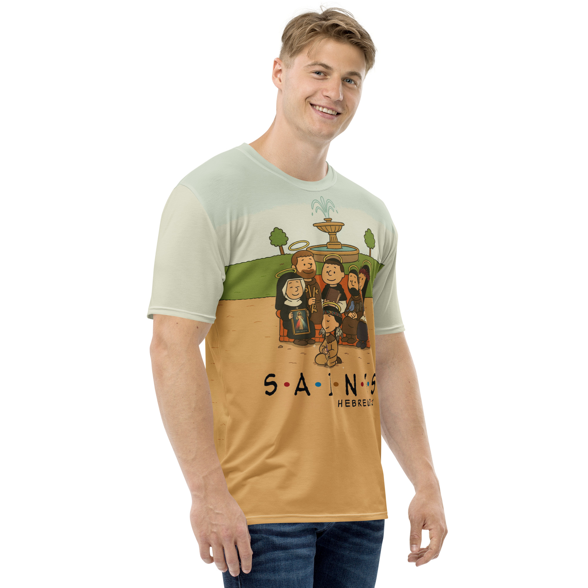 Celebrate the joy of the communion of saints with this playful design inspired by the lighthearted charm of the opening credits of Friends. Set around a cheerful fountain, the saints gather together in smiling companionship, echoing that iconic “friends-on-a-couch” moment, but with halos and habits. It’s nostalgic, joyful, and faith-filled all at once, a fun and meaningful way to show that holiness is about friendship, community, and walking to heaven together.